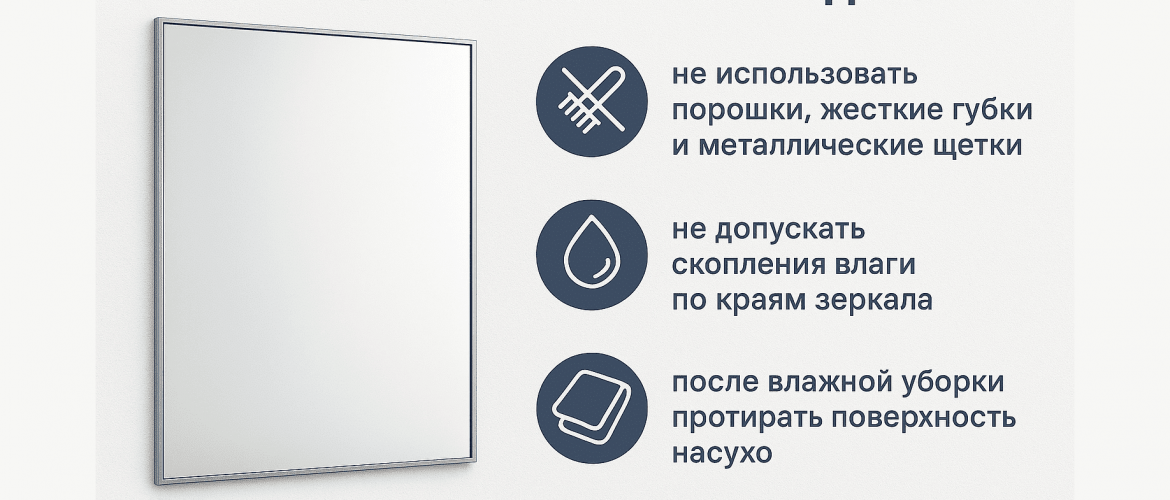 Как ухаживать за зеркалами, чтобы они сохраняли идеальный вид Зеркало — это не только функциональный элемент интерьера, но и поверхность, которая сразу показывает любые следы неправильного ухода. Разводы, помутнение, повреждение амальгамы со временем появляются не из-за качества изделия, а из-за ошибок в эксплуатации. Грамотный уход позволяет сохранить зеркала в хорошем состоянии на долгие годы, независимо от того, установлены ли это стандартные модели или зеркала с подсветкой на заказ. . Почему зеркала требуют особого ухода Зеркальная поверхность состоит не только из стекла. С обратной