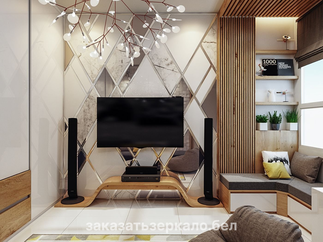 Зеркальные панели в гостинную