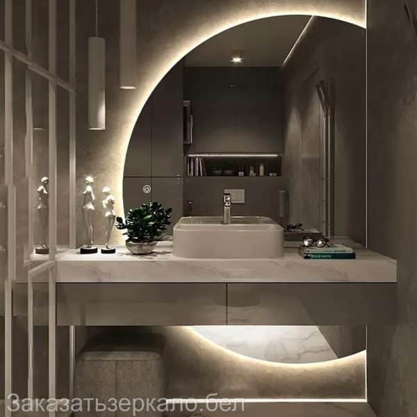 Большое полукруглое зеркало в ванной